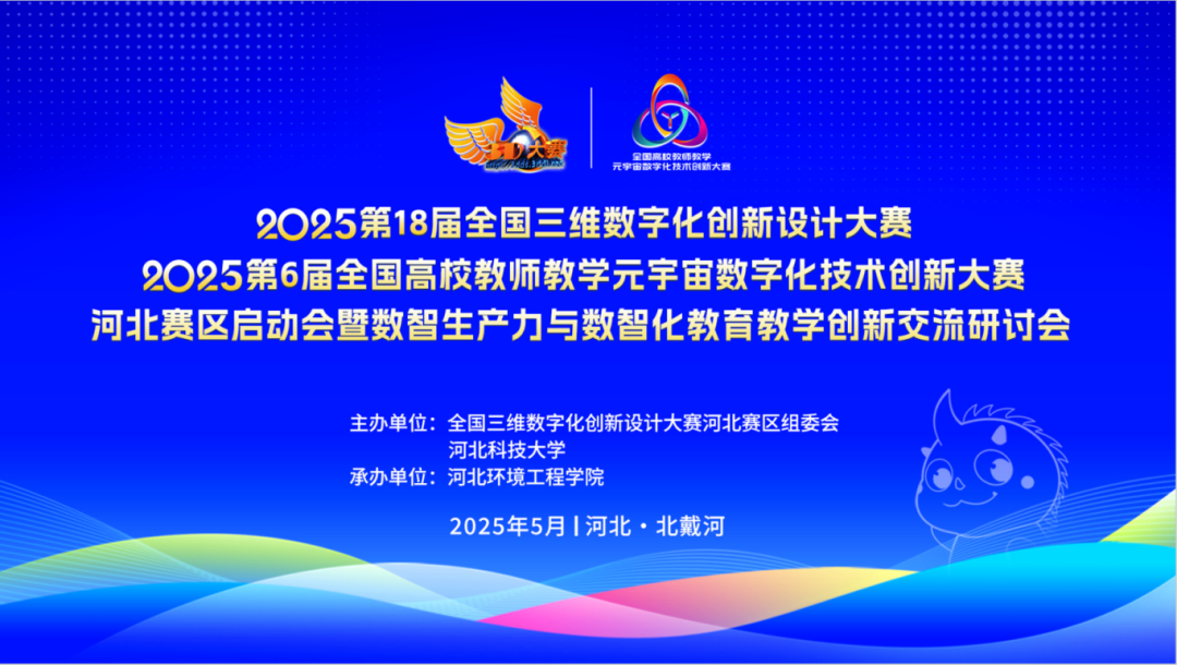 5月8日,全國三維數字化創新設計大賽、全國高校教師教學元宇宙數字化技術創新大賽(簡稱“3D兩賽”)河北賽區組委會換屆暨賽事啟動大會在河北環境工程學院學術交流中心隆重舉行。全國3D大賽組委會副秘書長劉曉青,河北環境工程學院副校長耿世剛,河北科技大學副校長華長春、北華航天工業學院副校長孫曉云,河北省動漫產業學會會長尚曉雷,河北省工業設計協會副會長兼秘書長于俊卯等出席會議。大會由河北環境工程學院工訓中心主任周雨主持。會議有來自省內30余所院校的領導、師生百余名代表參會。