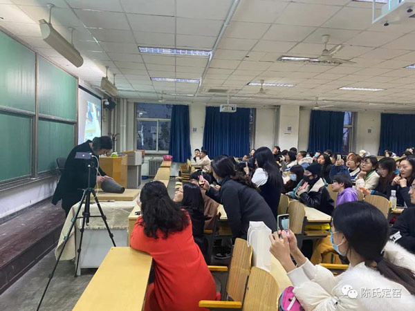 12月1日,陳氏定窯藝術(shù)總監(jiān)龐永輝受邀到華北電力大學(xué)進行定窯非遺文化學(xué)術(shù)報告,報告圍繞定窯歷史與發(fā)展、工藝及特點、傳承與創(chuàng)新三個方面展開,并對定窯刻花技藝進行了現(xiàn)場展示。